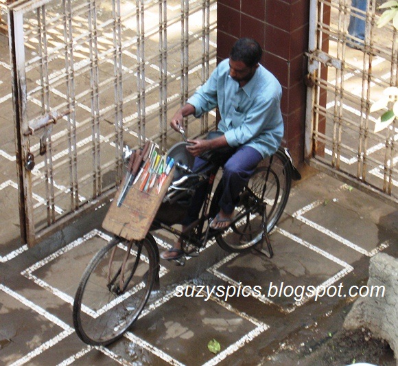 So here is a "Churi Dharwalla" - a person who sharpens knives (Churi = knife Dhar = kinfe edge) in Bombay (Mumbai), India.